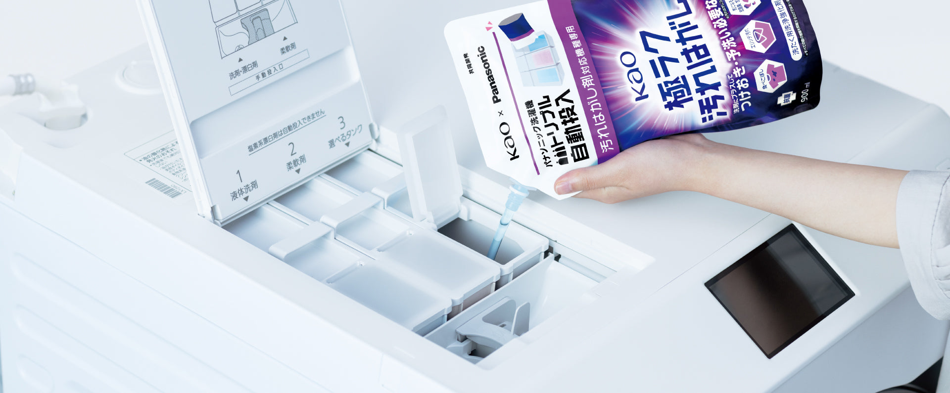 Công nghệ giặt W của Panasonic tối ưu hóa 3 sức mạnh. Chất tẩy rửa nhờ cơ chế tạo bọt thẩm thấu. Nước phun mạnh mẽ từ 7 vòi phun. Chuyển động lồng giặt linh hoạt thông minh.