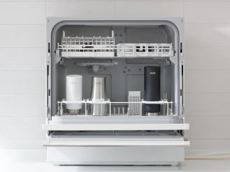 Trong quy trình làm sạch chén đĩa, máy thực hiện khử trùng bằng dòng nước áp suất và nhiệt độ 80 ° C.